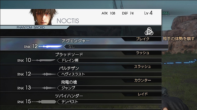 最初は主人公のノクトを使用してチュートリアルを終わらせます。