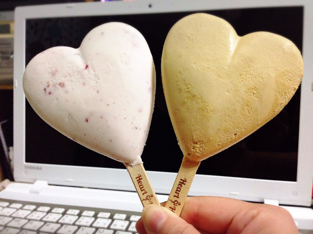 店員の女性が気さくに「ハート型は珍しい」と言っていましたが、確かにバーにはしないですよね。世間のジェラートは山型ですし。