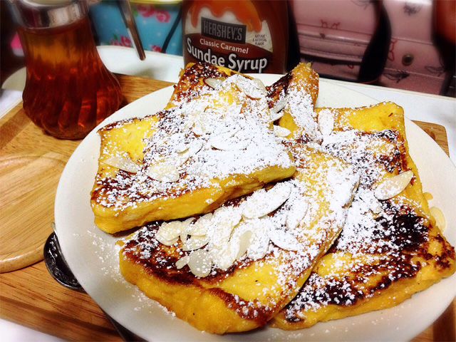 もうこうなったら贅沢な一日にしてしまおうと、夜はフレンチトースト焼きました。