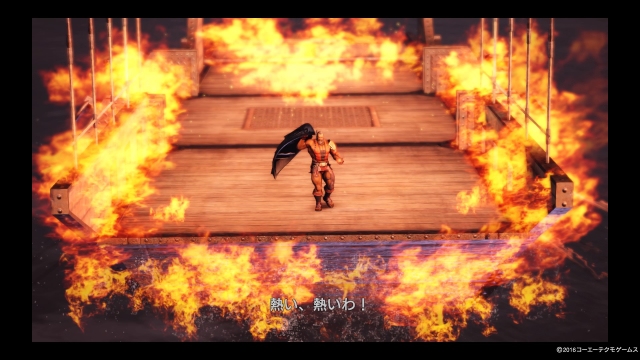 「火」を託された黄蓋が炎上しながら曹操軍へ突撃。