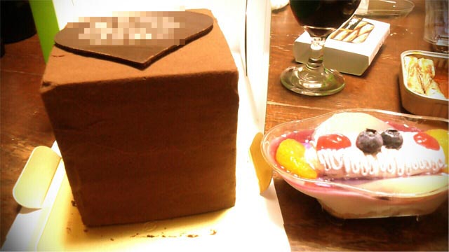 私のケーキはこんなシックなスクエア。